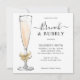 Champanhe Elegante moderno Flute Wine Glass Script Calliografia Brunand Bubble Chá de panela
