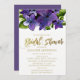 Estes convites são desenhados com um padrão de folha de ouro falso, acentuado com padrões de buquê floral de cor aquosa, pintados por mim. O dorso é projetado com uma sombra coordenada de roxo. Personalize com as informações do seu partido para criar um convite que certamente se tornará uma manutenção.