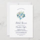 Este clássico chá de panela de buquê de flores brancas é perfeito para um chá de casamento de primavera. O elegante design floral apresenta marfim macio e rosas brancas e peônias com toques de flores azuis-rosadas-periwinkle e folhagem verde.