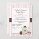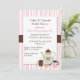 Doce chá de panela feito de cor rosa e marrom, com tema de café. Bonito fundo listrado, rosa e branco, com uma cobertura de área de texto branca, com gráficos de um pote de café, canecas coloridas de café e um cupcake rosa bonito. O texto cor-de-rosa e marrom é totalmente personalizável para atender às suas necessidades de evento. Personalize o seu próximo bebê ou chá de panela.