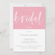 Chá de panela moderno minimalista, cor-de-rosa e branco, com Script de Caligrafia de Pincel de perder. Personalize facilmente este Modelo de Convite Bridal Brunch com o nome escolhido e mude o texto para ajustado do seu evento como Bridal Brunch, Chá de panela, Roubo de Brida etc. Um Convite para Chás de casamento super versátil e moderno, com um fundo cor-de-bloco rosa e branco (a cor pode ser alterada se quiser!).