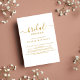 Este chá de panela minimalista apresenta uma escrita dourada na caligrafia na moda moderna sobre um fundo branco limpo. Personalize com suas informações ou clique em "Clique para personalizar mais" para editar estilos de fonte, tamanho e cores. Fácil de personalizar. Confira!