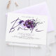 Flores roxas escuras e leves convites de chá de panela "chá a noiva"