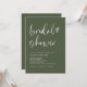 Este chá de panela de guião verde-oliva minimalista é a forma perfeita de convidar convidados a comemorar os próximos núpcias da noiva. O convite apresenta um design elegante e na moda, com fundo verde-oliva profundo e um texto elegante para caligrafia em branco. A caligrafia adiciona um toque de sofisticação ao convite e dá o tom para um chá de panela de classe e na moda. O convite é impresso em estoque de cartão de alta qualidade e pode ser personalizado com o nome, data, hora e local da noiva do evento. É uma maneira fácil e conveniente de convidar convidados para uma celebração memorável de amor e amizade.