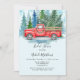 Adicione um encanto confortável ao seu casamento no inverno com este design de cor da água rústica apresentando um clássico caminhão de safra vermelha adornada com terras e luzes festivas. O caminhão carregar pinheiros cobertos por neve e se coloca contra um pano de fundo sereno de floresta com delicados flocos de neve azuis a derivar de cima. Perfeito para convites de casamento no inverno, salve as datas, a sinalização ou as placas de obrigado. Esta design romântica e nostálgica captura a magia de uma celebração de neve cheia de amor e elegância rústica.