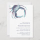O chá de panela chic costeiro apresenta uma ilustração de caranguejo azul-aquarela estilo vintage, com os detalhes do seu chá de panela em azul-marinho clássico. Perfeito para chás de panela de praia, verão ou tema náutico, esses convites de estilo costeiro revertem para o azul de porto sólido.
