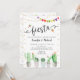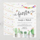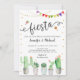 Este convite divertido apresenta suculentos de aquarela com sotaque dourado e sinalizadores de fiesta colorida.