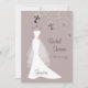 Vestido de casamento branco elegante, candelabras e cordas de pérolas em um Chá de panela de fundo rosado.