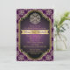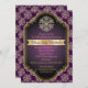 Floco de neve Dourado e roxo e chá de panela personalizado de casamento de quadro apresentando uma imagem IMPRESSA de um floco de neve dourado com joias, um quadro roxo gradiente com contorno dourado, uma faixa dourada e um padrão com flocos de neve. Este design moderno, elegante e na moda é totalmente personalizável e perfeito para casamentos de Natal de inverno.