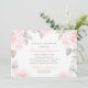 Design de chá de panela de casamento elegante e romântico apresenta informações personalizadas de blush e cinza de pérola enquadradas por uma borda de rosas cor-de-rosa macia com folhas verdes / cinzas. Flores têm uma bela aparência pintada de aquarela.