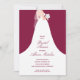 Uma noiva em seu vestido de noiva em um fundo vermelho de amora (ou qualquer cor), perfeito para convites de chá de panela elegantes. (O padrão de Rosa no verso pode ser excluído.) CORRESPONDENDO a itens na nossa loja.