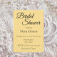 Estilo simples, chá de panela que apresenta uma tela de fundo de cor amarelo-manteiga, juntamente com o nome da futura noiva, a hora e o local do evento da festa, o contato, etc., impressos em caracteres brancos estilizados. Personalize o seu convite substituindo o texto pelas suas próprias informações de chá de panela. Selecione o estilo e a quantidade do seu papel de convite.