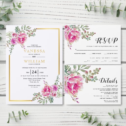 Pink watercolor cactus flowers wedding collectionCriado por Modern Designs