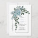 Flores de cor-de-água azul poeirenta e chá de panela de casamento da primavera de arco. Esta adorável design de casamento apresenta um arco com flores azuis empoeiradas e folhas verdes no canto esquerdo. O nome está na tipografia de script.