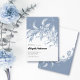 Chá de panela de casamento floral com flores azuis e brancas. Este belo design mostra uma fronteira floral azul e branca poeirenta e seu texto.