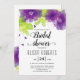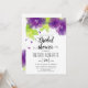 Buquê com flores etéreas roxas e roteiro cursivo caligrafia escrita à mão chá de panela de casamento floral da primavera. A parte superior é coberta por um belo buquê de flores violetas roxas com folhas verdes.