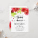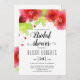 Buquê com flores etéreas vermelhas e roteiro cursivo caligrafia escrita à mão chá de panela de casamento floral da primavera. A parte superior é coberta por um belo buquê de flores vermelhas e cor-de-rosa com folhas verdes.