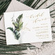 Este cartão de chá de panela de casamento apresenta folhagem tropical verde aquosa com sotaques de folhas de ouro falsas e um padrão de folhas tropicais no verso. É perfeito para um casamento de praia, verão ou destino. >>> Veja a coleção inteira >> https://www.zazzle.com/collections/tropical_foliage_gold_collection-119316977990783186