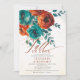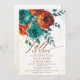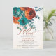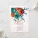 Este Chá de panela ou Casamento Floral Botânico Queimado de Teal Vermelho Laranja Queimado com Teal Queimado Captura a essência do outono com uma fronteira floral botânica com rosas de aquarela e folhagem de casamento em tons ricos e quentes de terra e terracota queimada laranja, assim como o título "Cair no Amor" na caligrafia moderna. O design de convite é complementado por uma textura de aquarela pálida, evocando o ar nítido e os tons de outono do ouro. Ideal para uma noiva planejando um chá de panela rústico, jardim, ou uma celebração íntima do quintal, este convite reflete perfeitamente a atmosfera acolhedora e romântica da estação do outono, misturando arte romântica com elegante simplicidade para qualquer lugar.