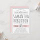 Este elegante chá de panela de casamento combina a tipografia moderna, em preto e branco, com um toque de rosa-pincelado. Os nomes do casal são lindamente escritos em uma tipografia desenhada à mão, acrescentando um toque pessoal e único ao convite. A data do chá é destacada em uma delicada faixa cor-de-rosa, criando um ponto focal que desenhar atenção. Para acrescentar um toque sofisticado, uma borda negra envolve o convite, dando-lhe um aspecto polido e refinado. No verso do convite, um encantador padrão de cruzes brancas em um fundo rosa suave adiciona um elemento sutil, mas na moda, ao design geral.