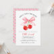 Chá de panela de Casando de cereja - Comemore o momento mais doce do amor com nosso Chá de panela de Arco de cereja. Este design espetacular mostra cerejas vermelhas vibrantes amarradas brincalhosamente com um charmoso arco rosa, simbolizando a união de dois corações. A tipografia graciosa da escrita enquadra elegantemente os detalhes do dia especial, acrescentando um toque de sofisticação ao caos. O reverso é enfeitado com uma cascata de cerejas, criando um pano de fundo alegre e coeso ao convite. Perfeitamente adequado a uma Coleção de Chás de panela, este convite dá o tom para uma celebração tão doce, vibrante e encantadora quanto o próprio amor.