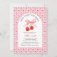 Chá de panela de Casando de cereja - Comemore o momento mais doce do amor com nosso Chá de panela de Arco de cereja. Este design espetacular mostra cerejas vermelhas vibrantes amarradas brincalhosamente com um charmoso arco rosa, simbolizando a união de dois corações. A tipografia graciosa da escrita enquadra elegantemente os detalhes do dia especial, acrescentando um toque de sofisticação ao caos. O reverso é enfeitado com uma cascata de cerejas, criando um pano de fundo alegre e coeso ao convite. Perfeitamente adequado a uma Coleção de Chás de panela, este convite dá o tom para uma celebração tão doce, vibrante e encantadora quanto o próprio amor.