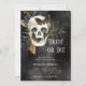 Bela escuridão e humor este convite para chás de panela é perfeito para aqueles que amam gótico e Halloween. As nassas, folhas e borboletas do crânio num fundo de aquarela preta marcaram a vibração. Uma tipografia incrível acrescenta ao olhar. Veja a coordenação de itens no nosso compro, Encantado Finch.
