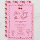 Celebre a noiva a ser com este chá de panela doce e na moda! Apresentando um design de cereja rosa e vermelha, este charmoso convite é adorável com um arco bonito, um bolo delicioso, e um coquetel festivo, definindo o tom perfeito para um evento divertido e elegante. O tema alegre da cereja continua com um padrão opcional de cereja em camadas atrás, acrescentando um toque de chorona.