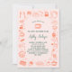 Rabiscos brancos desenhados à mão dão vida a este chá de panela tema do chá. As imagens incluem bules, xícaras, copos de champanhe, bolos, pastéis e outros doces. Você pode mudar todas as cores.