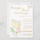 Convite elegante para um Chá de panela de Champagne Brunch. Lâmpada e bela aquarela de flautas de champanhe revestida com flores. Personalizado com detalhes do chá.
