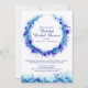 Convites de chá de panela de cintura azul com asas. Arte bonito e solta de lavagem a aquarelas e pintura esparsa, maruca azul, maruca, com convites para duche de noivas reprogramados antes do casamento. Ideal para um evento de chá de panela azul atrasado. © Original watercolor art e design por Sarah Trett para www.mylittleedenweddings.com