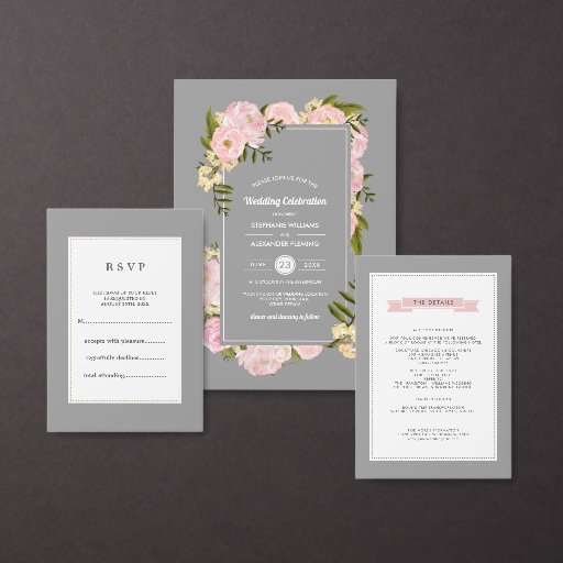 BLUSH PINK PEONIES WATERCOLOR GRAY WEDDING SUITECriado por Mairin Studio