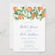 Laranjas suculentas de aquarelas com contrastes vibrantes de azul de cobalto para estes convites para noivas ou chás de casamento. Eu defini este modelo com sotaques azuis cobaltos, mas essa cor pode ser alterada para qualquer cor que você quiser (inclusive no verso), mergulhando um pouco na ferramenta design e usando o "decodificador de cores".