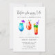 Chá de panela divertido para ilustrar as bebidas coquetéis tropicais coloridas. O texto diz "antes que ela diga que eu tomo, o vamos bebe ou dois."