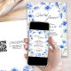 Convites Chá de panela de Código QR Floral Azul Elegante