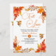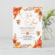 Um elegante design Chá de panela com ferrugem cai floral, folhas de árvores mapeadas, bolotas, caligrafia elegante e um tema de "queda no amor".