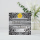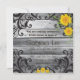 Casamento rústico perfeito, formal ou country - madeira de celeiro de cinzas, com uma variedade de girassóis amarelos brilhantes, em papelaria de casamento correspondente para uma coleção completa de casamentos. Acentuado com uma vibrante renda negra - esta é uma busca única e tendenciosa por uma aparência formal do país chic - excelente para o antigo casamento romântico por país. NOTA: Este produto de papel não tem madeira, flores ou rendas reais - estas são desenhadas artificialmente para parecer reais.
