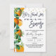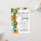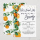 Elegante e moderno chá de panela do tema laranja. Este design apresenta um título de caligrafia em pincel preto e uma adorável fruta de citros e disposição floral ao lado, assim como alguns pontos de brilho dourado. Ela encontrou seu principal aperto, chá de panela com o tema dos citros é uma forma doce de convidar convidados para um chá de panela que vem pela frente.