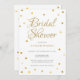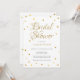 Projetado para coordenar com a nossa coleção de chás de confete de noivos. Apresentando o cabeçalho do Chá de panela de script dourado, corações dourados estão espalhados em torno de seus detalhes personalizados, definidos em texto de cinza empoeirado neste chá de panela chic.