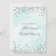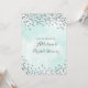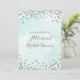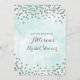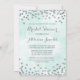 convites de chá de panela personalizados em azul-turquesa claro e confete prateado. Observe que prata é apenas efeito fotográfico.