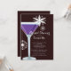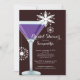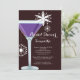 chá de panela moderno com um copo de martini roxo com flocos de neve brancos. Na moda chá de casamento convida para um inverno, Natal, chá de panela de férias.