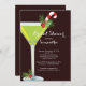 chá de panela moderno com um copo verde de martini com um holly e uma canavieira. Na moda chá de casamento convida para um inverno, Natal, chá de panela de férias.