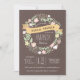 Uma coroa de flores pastel, puxada à mão, em papel de artesanato, faz com que esta suíte rústica de convite para casamento seja guardiã. Uma faixa de fita de tendência adiciona uma vibração artística, fazer este conjunto perfeito para casamentos tranquilos ao ar livre.