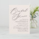 Convites de chá de panela simples com "Chá de panela" exibido em um script de caligrafia preta com fundo creme. Personalize os convites de chá de panela de creme com o nome da noiva e os detalhes do chá abaixo. O chá de panela moderno convida a reversão para mostrar um fundo creme sólido.