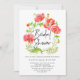Chá de panela personalizável com papoilas vermelhas de cor d'água e tipografia de script de pincel com um padrão branco no verso. Este convite será perfeito para chás primavera. Estão disponíveis outros eventos.