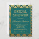 Convite de festas de Chá de panela Vintage com Padrão de Arte de Folha Teal e Gold. Este convite é perfeito para o Partido Chá de panela Turquesa e Dourado Casamento que quer celebrar no Estilo de 1920. Entre em contato com o designer para obter itens correspondentes.