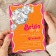 Prepare-se para festejar com este vibrante convite da noiva, com bolas brilhantes de disco e um esquema de cor laranja e rosa impressionante! Com espaço para personalizar o nome e os detalhes do evento da noiva, este convite é perfeito para noites de galinha, festas de solteira ou qualquer celebração de glam pré-casamento. Uma maneira divertida e fabulosa de dar o tom a uma noite inesquecível!
