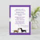 chá de panela bonito feito em um fundo roxo sólido, com uma fita branca com aspecto de uma placa, do outro lado do meio. Uma área de texto branco sobre a fita é decorada, com um dachshund marrom e preto, com corações lavandas entre eles. Todo o texto é personalizável para atender às suas necessidades de evento. Adorável convite de chá de casamento para a noiva ser querida.