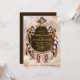 Um design de caçador de sonhos com guarnições douradas e marrons que inclui uma teia de vida redonda em círculo de bambu com penas castanhas e miçangas vermelhas em um fundo de pena macia fácil de personalizar com sua redação, fonte, cor de fonte, forma de papel e escolha de doze tipos de papel.
