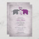O texto deste chá de panela elefante violeta roxo e cinza (cinzas) é totalmente personalizável. Para alterar o texto, use a opção personalizar. Para alterações mais abrangentes, como alterações na fonte, cor da fonte, tamanho da fonte ou layout de texto, use a opção personalizar. As cores neste convite são violetas roxas, pareadas com sombras de cinza. Os troncos elefantes formam um coração. Este convite é personalizado para um chá de casamento, mas poderia funcionar bem para um casamento, convite para festas de noivado ou convite para janto de ensaio. Talvez até um convite de festas de aniversário. É uma design de coração leve e fofo para um casamento menos tradicional e sem graça.